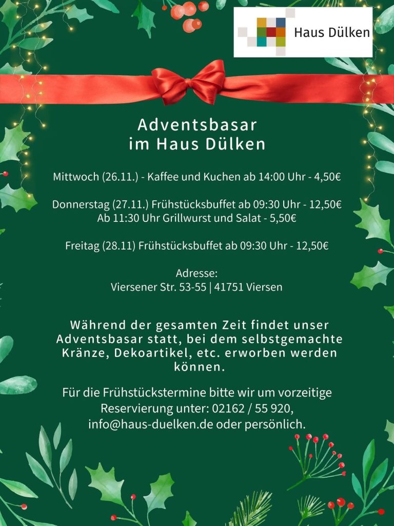 Unser Adventsbasar im Haus Dülken war ein schöner und rundum gelungener Nachmittag. In festlicher Atmosphäre konnten unsere Besucher viele liebevoll selbstgemachte Kreationen entdecken und erwerben, die von unseren Bewohnern und Mitarbeitern mit viel Engagement gestaltet wurden.